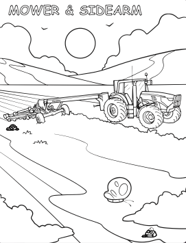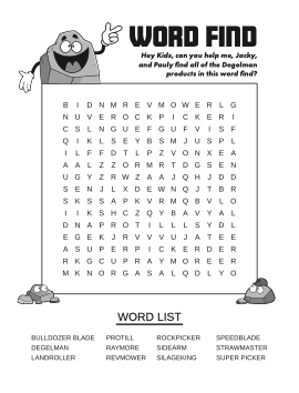 We hope you will enjoy colouring in all these super cool pictures of Degelman Equipment. Oh and my buddies Pauly and Jacky are mega super rock stars, that means they love Degelman equipment more than anyone, so you will often find them in the field watching them work. Can you find them on all these pages? Keep an eye out and have fun!”