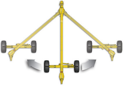 All driveline bearings and cross-joints are easy to service. Drivelines are in-line and designed for handling misalignment and therefore require less servicing. Parts are easily replaceable such as spindles that can be removed with just one bolt. The frame swivel points and wheel axle are sandwiched between two layers of low wear composite for smooth operation and easy maintenance.