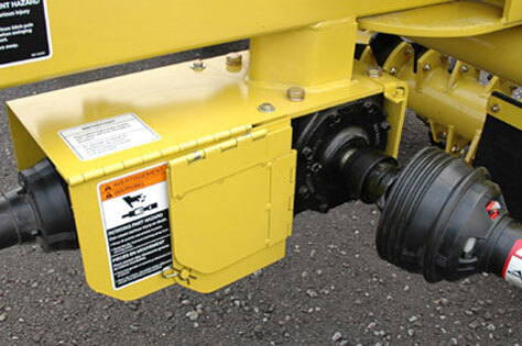 A 900-series Prairie Gear right-angle gearbox completes the PTO-drive system. A solid iron-alloy case houses robust components including tapered roller bearings, high-strength alloy shafts, and oversized Coniflex bevel gears.