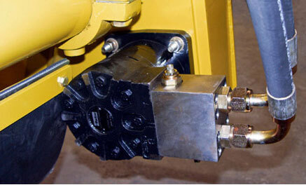 Hydraulic-drive rock rakes are the choice for tasks demanding quick setup/disconnect and applications that require reversing the drum rotation. The heart of Parker's TK-series powertrain, the torque link, is an extra-heavy-duty part that includes patented 60:40 spline geometry. Rugged construction throughout allows the transmission of over 23,000 lb-in of torque. The entire powertrain is continually washed in cool, high flow fluid to assure long life. Roller vanes and sealed commutator maintain high efficiency and provide smooth low speed performance.