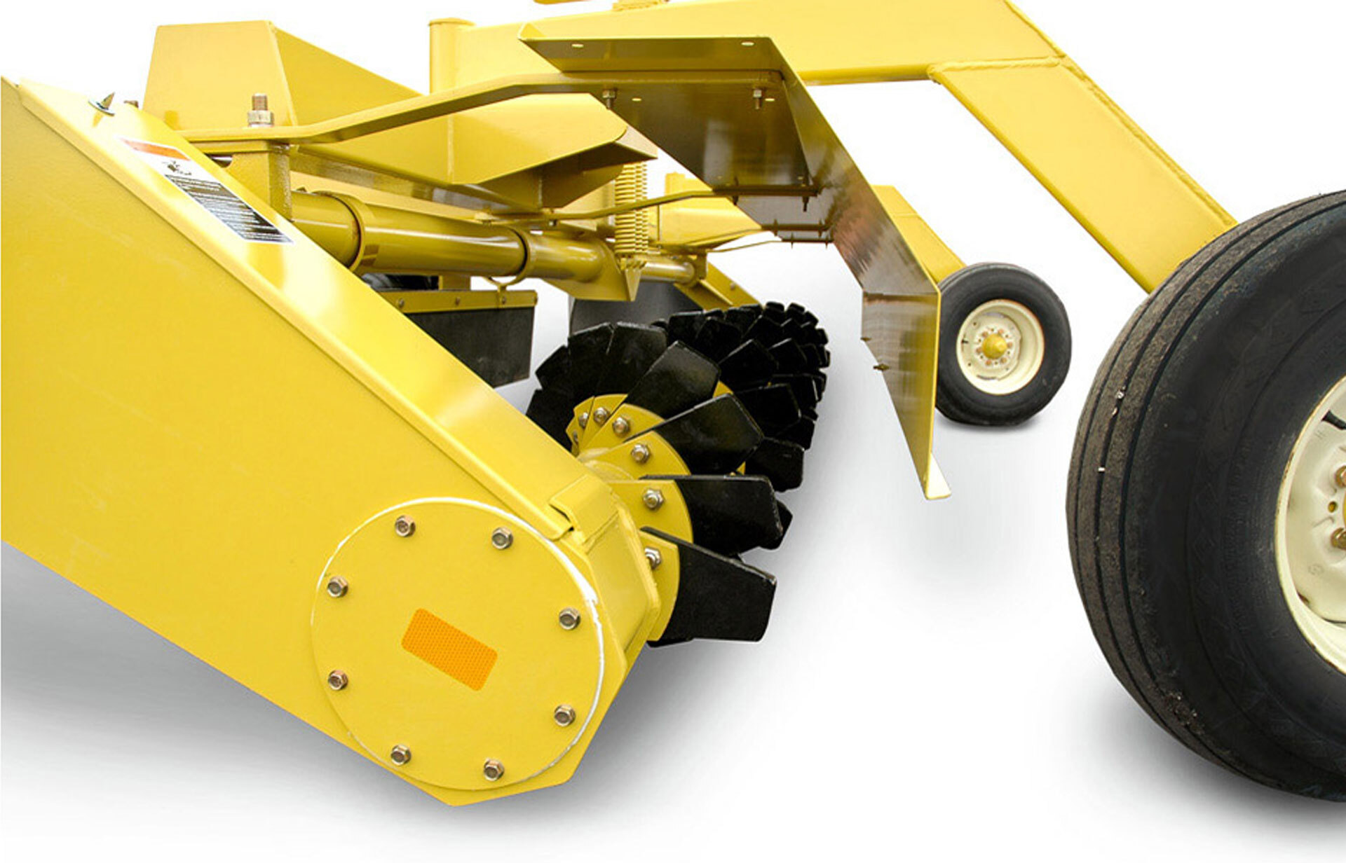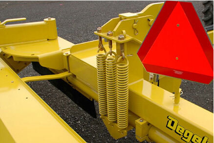 The tension springs are made of 12 gauge wire capable of absorbing 220 pounds per inch of deflection. Ample spring travel allows the RR1500 to keep moving over large obstacles in the field.